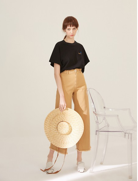 这款穿搭也千万不要错过哦,上身搭配一件黑色短袖,不需要多余的装饰就可以穿出简约的感觉,圆领的设计将自己的脖颈曲线修饰的很好看,下身搭配一件卡其色的高腰阔腿裤,高腰的搭配轻松将自家的大长腿展现出来,在视觉上拉高身材比例,搭配一双平底鞋,整体的造型简约大方很是休闲一款穿搭。