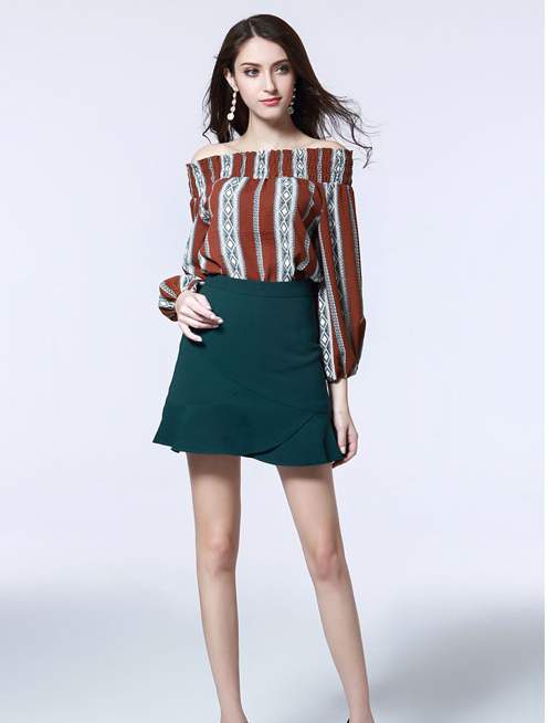 谁也没想到,墨绿色在这个秋天异军突起。它深沉又浓郁,它看起来有点高冷,实际上却美得不由分说!如果你已经厌倦了明亮色系,或许墨绿色会是你新的选择。浪漫精致的印花一字肩上衣搭配墨绿色半身裙,不招摇,却紧随潮流,让你无比知性!