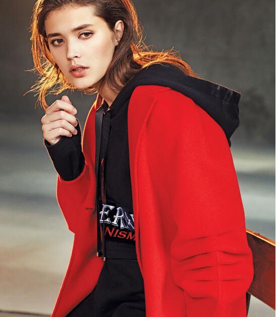 喜欢红色的狂放不羁,更喜欢黑红搭配的内敛与酷炫。这一款棉质的红色卫呢大衣,鲜艳的红表达着个体内心的蓬勃朝气与态度。亲肤舒适的面料,饶好的质感......内搭黑色连帽卫衣,宽松休闲,时尚精致。