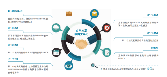 说到山东满意,不得不提曩昔几年 “买买买”的豪气手笔,一度被誉为“我国LVMH”。据不彻底统计,在春节四年间,山东满意已收买Sandro、Maje和ClaudiePierlot母公司SMCP、英国服装制造商雅格狮丹(Aquascutum)和伦敦萨维尔街裁缝店Gieves & Hawkes、日本百年男装品牌运营公司Renown、英国品牌Aquascutum、法国老牌奢华品牌Lanvin等多个世界时髦品牌、公司,总计花费近410亿元。
